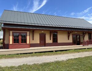 Reimagine the Train Station as a 21st Century Transportation Hub With the grand opening in September 2025, the dream of the Danville Train Station as an Lamoille Valley Rail Trail Trailhead was realized. The Train Station as a trail head has parking, ADA bathrooms, water refill station, informational kiosks. The passenger side of the Train Station houses exhibit space maintained by the Danville Historical Society. The freight side hosts the Lamoille Valley Bike Tours, Rocky’s NY Style Hot Dogs, and a gear shop. These vendors will provide much needed amenities for trail users and provide some revenue to fund the day to day operations of the Danville LVRT trailheads, With all these amenities, the Train Station is a “must stop” for LVRT users. The Train Station Trailhead will have more regular hours of operation starting in the late spring 2026. The station will be staffed by volunteers, so days and hours of operation may vary. Read About the Economic Impact of the LVRT in the NEK Photo: Bill Mason